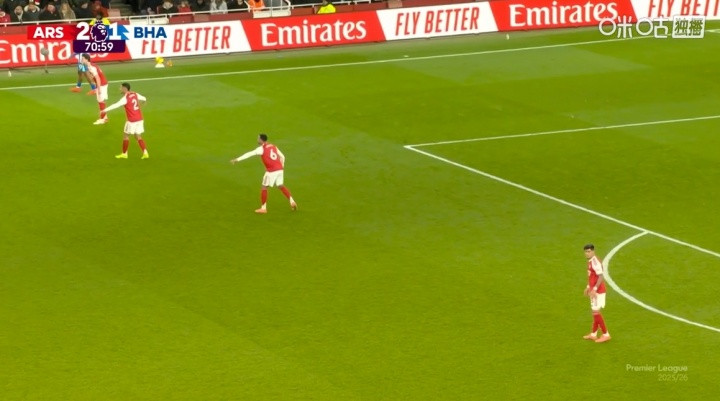 比赛第71分钟,加布里埃尔替换斯凯利登场,出任左中卫,而首发左中卫因卡皮耶则来到了左边卫的位置。